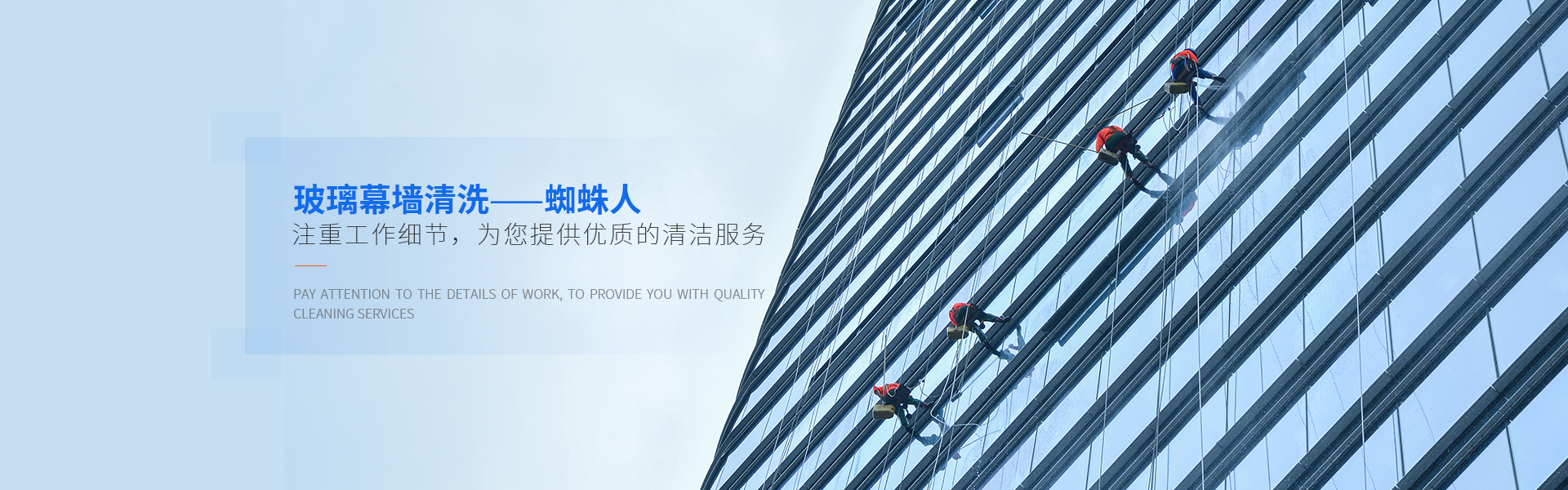 專(zhuān)業(yè)從事高空外墻清洗、外墻翻新、外墻防水等高空服務(wù),服務(wù)眾多知名建筑,擁有完善的服務(wù)體系與資質(zhì)認(rèn)證。